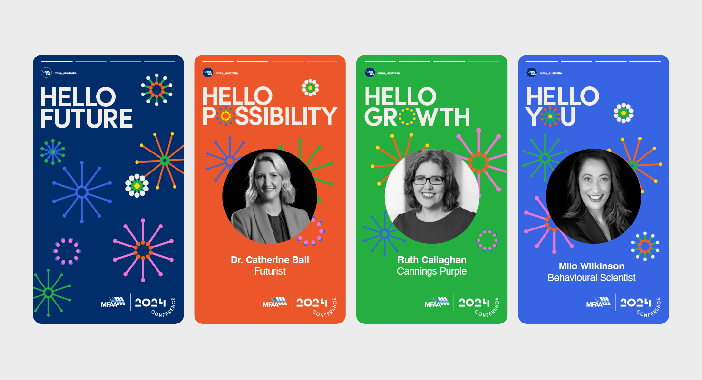 In our seventh year partnering with the MFAA, we conceived and helped to bring to life their 2024 National Conference theme, ‘Hello Future’. Their national conference is the industry’s flagship event — uniting brokers, members, partners and sponsors to inspire meaningful dialogue and insight.